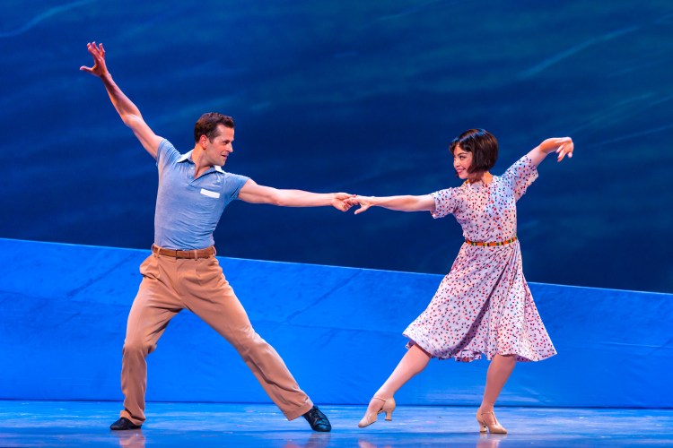 At the conclusion of Act 1 Milo and Jerry attended a costume masquerade party with ‘to die for’ red and black designs by Bob Crowley called the ‘Second Rhapsody.’ This ballet was upbeat and fun, and the dancers performed quirkier moves than traditional ballet as they revealed themselves from under their masks. Another charismatic highlight was the routine ‘Fidgety Feet’, where the ensemble members with Robbie’s lead did a swift chair and feet dance from their seat at the gala night, it was thoroughly entertaining.