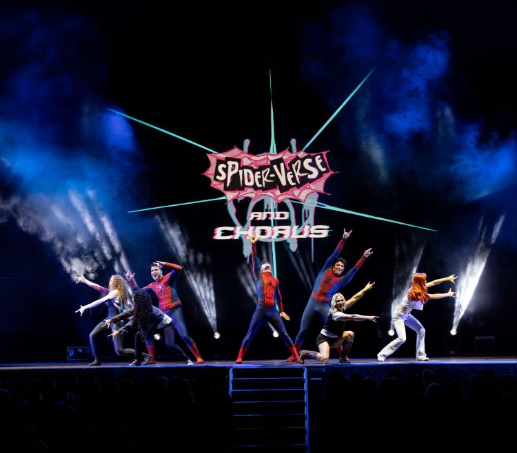 Musical theatre lovers are also well fed. Natasha O’Hehir as Loki in the Defying Gravity-inspired moment from Wicked cleverly references the character’s arc on Disney+, finishing suspended mid-air in a perfectly executed gag. Meanwhile, a trapeze duet channeling the chemistry of Zendaya and Tom Holland sees Spider-Man counterparts soaring while singing Rewrite the Stars from The Greatest Showman—a genuinely stunning sequence before the show cheekily undercuts it.