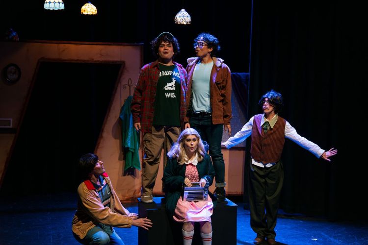 Elton Jun (Lucas) and Peter Wood (Dustin) make a dynamic duo, bouncing off each other with goofy enthusiasm, and Daniel Lelić is a comedic standout as Steve—the hair, the ego, the whole package and Jonathan, Will’s brother and loner photographer. Chelsea Sales pulls double duty as Nancy and Robin, switching effortlessly between characters with sharp delivery and strong vocals.