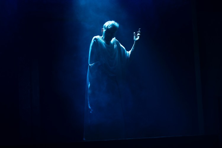 In this production Penny Everingham plays Tiresias, which is originally a man’s role. Penny is breathtaking and a little comedic in her serious scene with Creon about the future of her undoings. She embodies the blind soothsayer of Thebes. She reveals to Queen Creon that by not blessing Polynices with a proper burial, it will bring a curse from the Gods to Thebes and that her family will suffer the consequences.