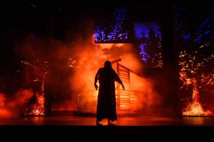 Throughout the play, the clever use of dry ice mist at the beginning, blazing fire, well-placed jump scares and a revolving stage added layers of tension and mystery to the production that had the audience on the edge of their seats. The use of projections added a layer of complexity to the production. Running and seeing characters on both screen and stage seamlessly integrated the visual elements of the storytelling blurring the lines between reality and illusion. During this scene, Victor’s brother William’s eerie demise and the chilling sound effects of his skull cracking were particularly spine-tingling.