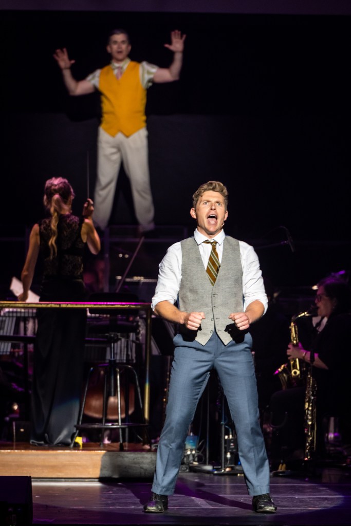 The incredible ensemble in this production were spotlighted so brilliantly as they danced and sang with such joy and overwhelming gratitude for what they do specifically in the production numbers, ‘All I do is dream of you’, ‘Beautiful girls’, ‘Broadway Melody’ and of course the ‘Singin’ in the rain Finale.’ They utilised the limited amount of stage space so well as they took advantage of the stairs on either side and interacted with the orchestra as well. Lena Cruz was wonderful as Miss Dinsmore and Dora Bailey the nosy reporter. Caitlin Quinn displayed her fun loving sassy persona for Lena’s ‘best pal’ Zelda Zanders. Gabriel Tiller gave his all as the amazing Director of the film in the show, Roscoe Dexter. Courtney Bell, Jack Connor-Rowan, Shay Debney, Chloe Marshall, Joe Meldrum, Isabella Roberts and Sophie Zidar rounded out the wonderous cast.