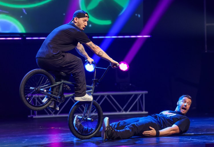 The visuals are equally stunning, with vivid projections amplifying the performances. From the spinning wheels of Bellanti’s BMX to the acrobatic artistry of Price’s Cyr wheel, every rotation feels larger than life.