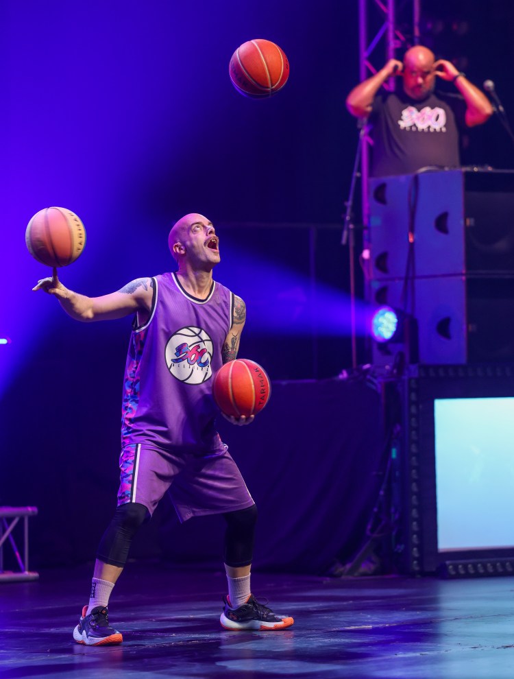 360 ALLSTARS isn’t just about extraordinary feats of skill; it’s also a feast for the senses. The pulsating live soundtrack, paired with dazzling video projections, elevates the show to another level. Peterson’s high-energy drumming forms the heartbeat of the production, seamlessly blending with Roman MC’s freestyle vocals to create an electrifying soundscape.