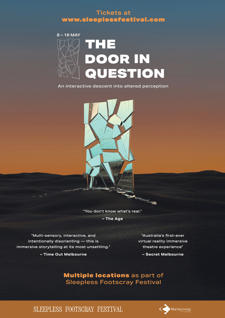 Are there plans to take The Door In Question to other festivals or cities after Sleepless Footscray?Yes! We’re working on that now. The modular nature of the piece makes it adaptable to other disused spaces, and the response has been strong. It’ll need recalibration for each site, but that’s part of the fun. The dream is to let it live in different cities, with each version warped by the new space it haunts.